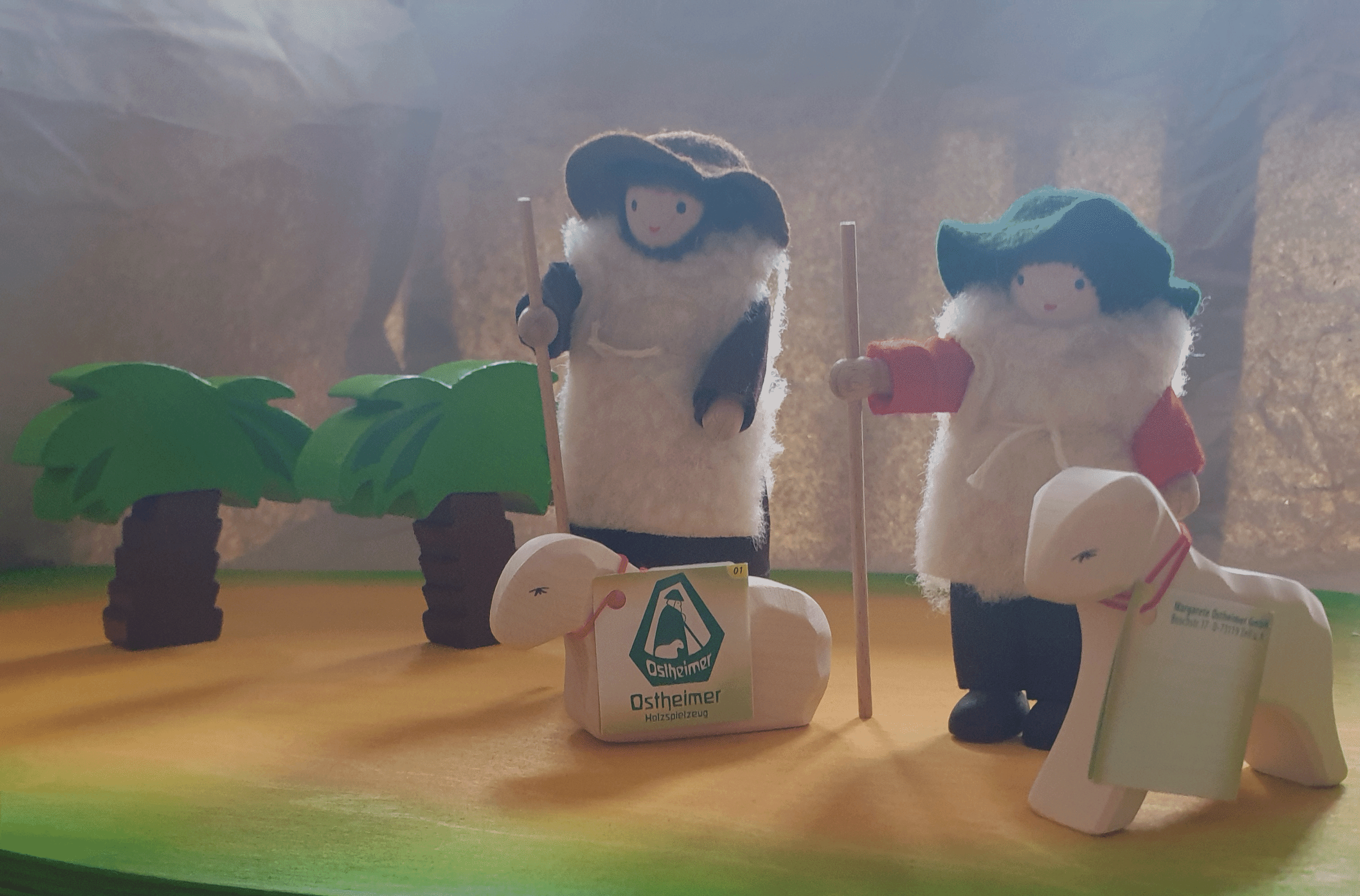 Das Krippenset besteht aus einer Kombination aus Schlichting, HABA und Ostheimer Krippenfiguren