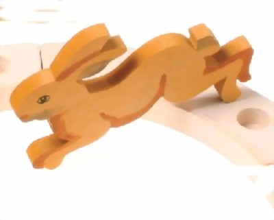 Handbemalter Stecker von Grimms - springender Hase für Geburtstagsring oder zum Schmücken von Jahreszeitentischen oder Festtafeln. Die Stecker sind aber auch ein nettes Mitbringsel. Sie bringen Farbe auf den Tisch