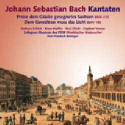 Für den berühmten Stadtpfeifer Gottfried Reiche waren die Strapazen zu groß: Bachs erster Trompeter starb am Tag nach der Uraufführung der Kantate „Preise dein Glücke, gesegnetes Sachsen, BWV 215“. Bach hatte die Glückwunschkantate zur Krönung Augusts III, umrahmt durch einen festlichen Fackelzug Leipziger Studenten, am 5. Oktober 1734 aufgeführt. Der Leipziger Marktplatz bildete hierfür eine ideale Kulisse. Genau ein Jahr zuvor war der sächsische Kurfürst zum König von Polen gekrönt worden. Auch die zweite Kantate dieser Einspielung, „Dem Gerechten muss das Licht, BWV 195“, entstand für ein festliches Ereignis: Die Hochzeit zweier prominenter Bürger der Stadt Leipzig. Unter der Leitung von Karl-Friedrich Beringer musizieren der Windsbacher Knabenchor, das Collegium Musicum des WDR und so renommierte Solisten wie Barbara Schlick, Klaus Haffke, Paul Elliott und Stephen Varcoe.